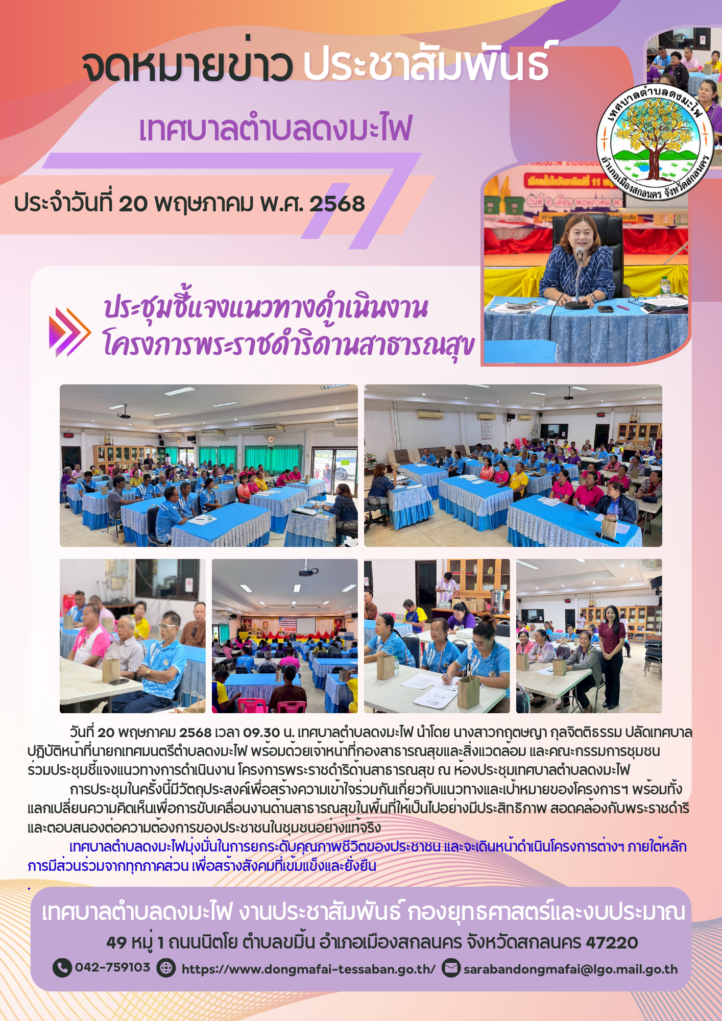 วันที่ 21 กรกฏาคม 2568 รายงานการปฏิบัติหน้าที่ประจำวันสำนักปลัดเทศบาล |