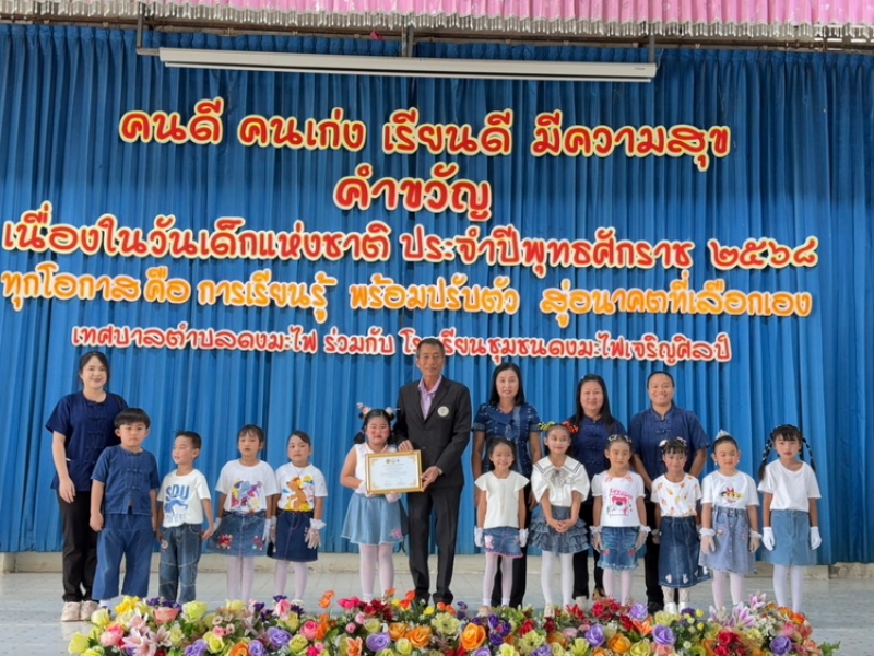 เทศบาลตำบลดงมะไฟ นำโดยนายณัฐพงศ์ ชุมปัญญา นายกเทศมนตรีตำบลดงมะไฟ คณะผู้บริหาร สมาชิกสภาเทศบาล ท่านปลัดเทศบาล รองปลัดเทศบาลและเจ้าหน้าที่พนักงานเทศบาลตำบลดงมะไฟ เข้าร่วมงานวันเด็ก ณ โรงเรียนชุมชนดงมะไฟเจริญศิลป์