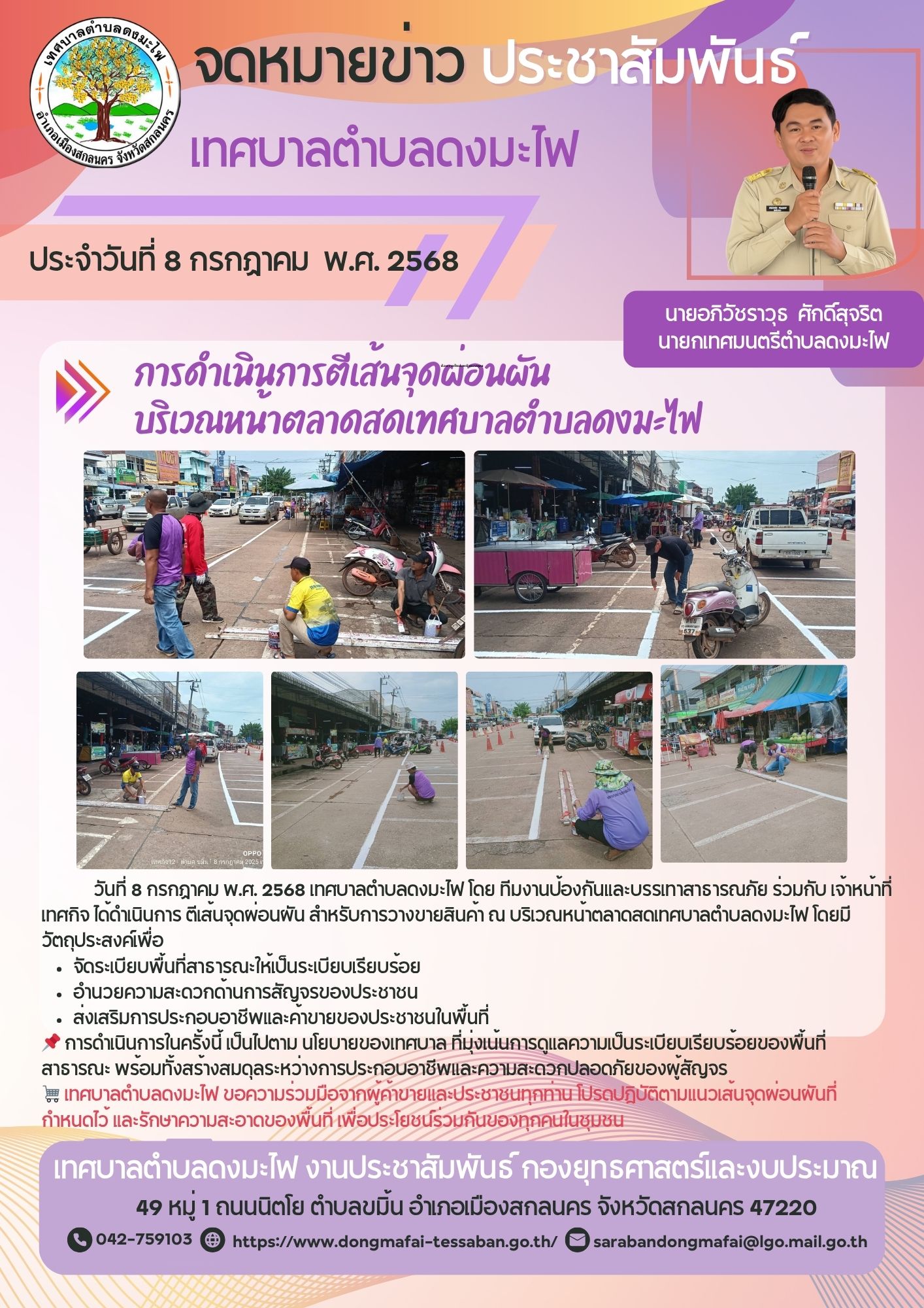 การดำเนินการตีเส้นจุดผ่อนผันบริเวณหน้าตลาดสดเทศบาลตำบลดงมะไฟ |