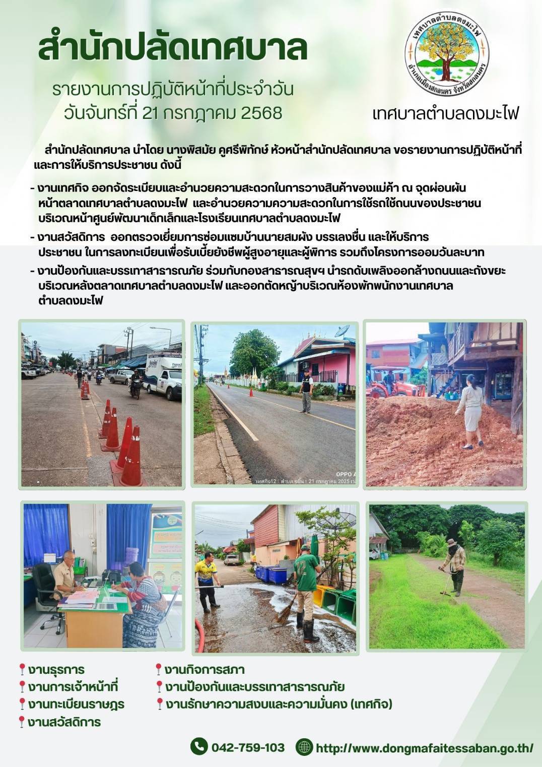 วันที่ 21 กรกฏาคม 2568 รายงานการปฏิบัติหน้าที่ประจำวันสำนักปลัดเทศบาล |